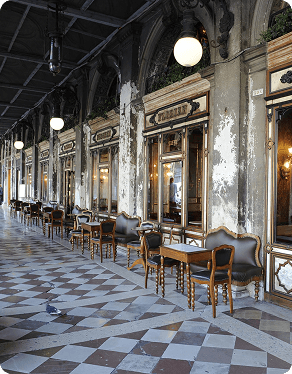 O Caffè Florian é um dos cafés mais antigos em funcionamento contínuo da Europa, fundado em 1720 sob as arcadas da Piazza San Marco, em Veneza. Ao longo dos séculos, tornou-se ponto de encontro de viajantes, artistas, escritores e figuras políticas, refletindo a tradição dos cafés históricos como espaços de convivência intelectual e social. Seus salões internos preservam decoração ornamentada, com espelhos, estuques, pinturas e mobiliário que evocam diferentes períodos da história veneziana. Além do valor cultural, o local mantém a tradição do serviço de café e confeitaria associado à vida pública da praça, permanecendo como referência da memória urbana e do patrimônio histórico da cidade.