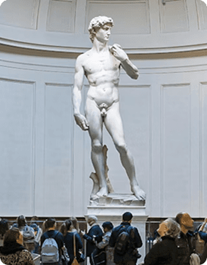 A Galleria dell’Accademia, em Florença, é reconhecida principalmente por abrigar o David de Michelangelo, uma das esculturas mais célebres do Renascimento. Fundada no século XVIII como espaço de ensino artístico ligado à Academia de Belas-Artes, a instituição reuniu obras destinadas ao estudo de pintura e escultura. Além do David, o museu preserva outras criações de Michelangelo, como os Prisioneiros, que revelam o processo escultórico do artista, e coleções de pintura florentina dos séculos XIII ao XVI. O percurso expositivo evidencia o papel central de Florença no desenvolvimento artístico renascentista e na formação acadêmica das artes na Europa.