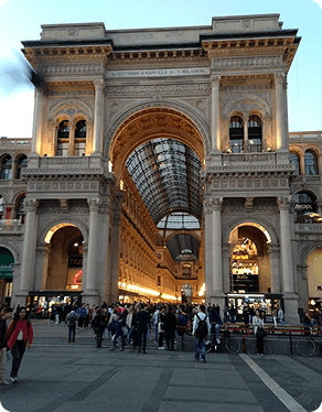 Inaugurada em 1867, a Galleria Vittorio Emanuele II é uma das passagens comerciais mais antigas e elegantes da Europa, conectando a Piazza del Duomo à Piazza della Scala. Projetada pelo arquiteto Giuseppe Mengoni, a estrutura combina ferro, vidro e elementos decorativos do século XIX, formando uma ampla galeria coberta por uma cúpula central octogonal. O piso em mosaico apresenta brasões de cidades italianas, incluindo o famoso touro de Turim, associado a uma tradição local de boa sorte. Ao longo do tempo, o espaço tornou-se ponto de encontro cultural e abriga cafés históricos, restaurantes e lojas que refletem a importância econômica e social de Milão.