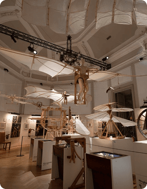 O Museu Nacional de Ciência e Tecnologia Leonardo da Vinci é a maior instituição italiana dedicada à ciência, à indústria e à inovação. Fundado em 1953 e instalado em um antigo mosteiro do século XVI, o espaço reúne coleções históricas, instrumentos científicos e modelos que documentam o desenvolvimento tecnológico europeu. Um de seus principais destaques é a galeria dedicada a Leonardo da Vinci, com reconstruções de máquinas, estudos de engenharia e experimentos baseados nos desenhos do artista renascentista. O museu articula patrimônio histórico e conhecimento científico, evidenciando a influência duradoura de Leonardo na arte, na técnica e na pesquisa moderna.