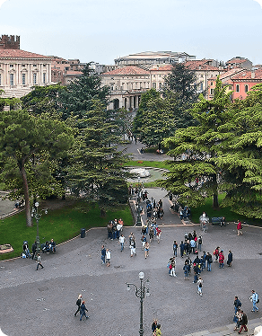 A Piazza Bra é a maior praça de Verona e organiza o espaço urbano diante da Arena romana, formando um dos conjuntos históricos mais representativos da cidade. Sua configuração atual desenvolveu-se principalmente entre os séculos XVIII e XIX, quando áreas abertas próximas às muralhas foram transformadas em espaço público. Ao redor da praça encontram-se edifícios institucionais, palácios históricos, cafés e jardins que refletem diferentes períodos arquitetônicos. O amplo passeio central arborizado favorece a circulação de moradores e visitantes, consolidando a Piazza Bra como ponto de encontro social, cultural e turístico no coração de Verona.