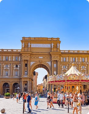 A Piazza della Repubblica está situada no centro histórico de Florença e ocupa a área que, na época romana, correspondia ao antigo fórum da cidade. Sua configuração atual resulta das grandes reformas urbanísticas realizadas no final do século XIX, quando Florença foi capital do Reino da Itália. A praça destaca-se pelos edifícios de arquitetura monumental, pelos cafés históricos e pelo arco triunfal que celebra a unificação italiana. Tradicional ponto de encontro cultural e social, o espaço mantém viva a tradição literária dos cafés frequentados por artistas e intelectuais, além de abrigar um carrossel histórico que reforça seu caráter público e simbólico.