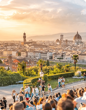 O Piazzale Michelangelo é um dos mirantes mais famosos de Florença, construído em 1869 como parte das obras de expansão urbana conduzidas pelo arquiteto Giuseppe Poggi. Situado em uma colina ao sul do rio Arno, o local oferece uma vista panorâmica do centro histórico, reunindo monumentos como a Catedral de Santa Maria del Fiore, o Palazzo Vecchio e a Ponte Vecchio. No centro da praça encontra-se uma réplica em bronze do Davi de Michelangelo, acompanhada por cópias de outras esculturas do artista. Tradicionalmente visitado ao pôr do sol, o espaço tornou-se símbolo da contemplação da paisagem florentina e da harmonia entre arte, arquitetura e natureza.