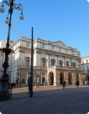 Inaugurado em 1778, o Teatro alla Scala é uma das casas de ópera mais prestigiadas do mundo e um dos principais símbolos culturais de Milão. Projetado pelo arquiteto Giuseppe Piermarini, o edifício apresenta fachada neoclássica sóbria que contrasta com o interior ricamente ornamentado, marcado por camarotes em múltiplos níveis e excelente acústica. Ao longo de sua história, o teatro recebeu estreias de compositores como Giuseppe Verdi, Gioachino Rossini e Giacomo Puccini, consolidando-se como referência internacional da música lírica. Além das temporadas de ópera e balé, o complexo abriga um museu dedicado à memória artística e musical italiana.