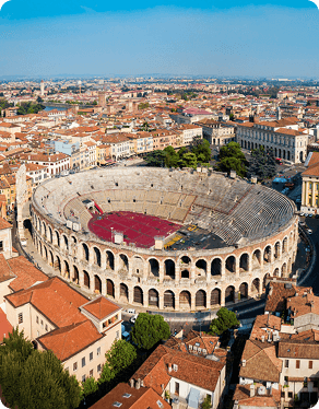 Construída no século I d.C., a Arena de Verona é um dos anfiteatros romanos mais bem preservados do mundo e um dos principais marcos históricos da cidade. Erguida em pedra calcária rosada extraída da região, a estrutura podia receber dezenas de milhares de espectadores para espetáculos públicos como combates de gladiadores e encenações. Apesar de danos causados por terremotos ao longo dos séculos, grande parte de sua arquitetura original permanece intacta. Desde o início do século XX, o espaço passou a sediar apresentações de ópera ao ar livre, reconhecidas internacionalmente pela acústica natural e pela monumentalidade do cenário histórico.