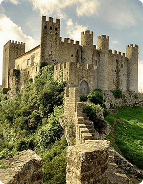 Erguido no topo de uma colina, o Castelo de Óbidos é um dos mais bem preservados de Portugal e guarda séculos de história dentro de suas muralhas. De origem romana, foi ampliado pelos mouros e transformado em fortaleza medieval após a Reconquista. No reinado de D. Dinis, o castelo passou a integrar o dote das rainhas, fazendo de Óbidos a “Vila das Rainhas”. Suas muralhas de pedra cercam ruelas estreitas, casas caiadas com detalhes em azul e amarelo, e igrejas centenárias que parecem congelar o tempo. Hoje, além de monumento nacional, acolhe eventos como o famoso festival medieval, que transporta os visitantes para o ambiente da Idade Média. Caminhar por Óbidos é viver um conto histórico cercado de charme e tradição.