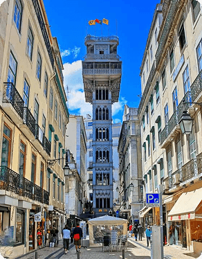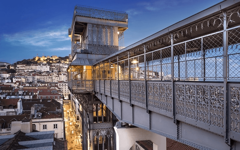 Erguido em 1902, o Elevador de Santa Justa é uma das obras de engenharia mais curiosas de Lisboa. Projetado por Raoul Mesnier du Ponsard, discípulo de Gustave Eiffel, ele foi construído em ferro fundido no estilo neogótico, com detalhes rendilhados que lembram uma escultura vertical. A estrutura liga a Baixa ao bairro do Chiado, superando a forte inclinação da cidade. No topo, um miradouro oferece uma das vistas mais bonitas sobre o Castelo de São Jorge, a Praça do Comércio e o Rio Tejo. Mais do que transporte, o elevador é um monumento que une utilidade, arte e história na paisagem lisboeta.