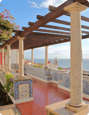Entre buganvílias floridas e azulejos pintados, o Miradouro de Santa Luzia é um dos recantos mais românticos de Lisboa. Localizado nas colinas de Alfama, oferece uma vista privilegiada sobre os telhados vermelhos do bairro e o Rio Tejo ao fundo. Os painéis de azulejos que decoram suas paredes retratam cenas históricas, como a Praça do Comércio antes do terremoto de 1755 e a conquista de Ceuta, ligando arte à memória do passado. Além da paisagem encantadora, o espaço convida à contemplação calma, entre pérgulas cobertas de trepadeiras e a pequena igreja que lhe dá nome. É o lugar perfeito para observar a essência de Lisboa: melancólica, luminosa e cheia de histórias sussurradas pelo vento que vem do rio.