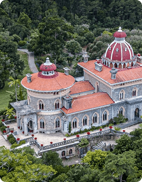 No coração de Sintra ergue-se o Palácio de Monserrate, uma obra-prima romântica do século XIX que combina influências góticas, indianas e mouriscas numa fusão arquitetônica encantadora. Encomendado por Sir Francis Cook, milionário inglês apaixonado por Sintra, o palácio impressiona com suas cúpulas rendilhadas, arcos exóticos e interiores delicadamente decorados. Mas é nos jardins que o esplendor atinge o auge: um vasto parque botânico onde convivem espécies raras vindas de todos os continentes, formando cenários que mudam a cada passo. Mais intimista que o Palácio da Pena, Monserrate transmite a sensação de refúgio romântico, um espaço onde arte e natureza se encontram em perfeita poesia.