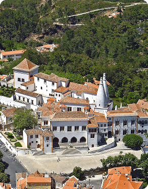 No coração da vila, o Palácio Nacional de Sintra é facilmente reconhecido pelas suas imponentes chaminés brancas em forma de cone, que se destacam na paisagem. De origem medieval, foi residência favorita de vários reis portugueses, refletindo séculos de história na mistura de estilos arquitetônicos que vão do gótico ao manuelino. O interior guarda tesouros como a Sala dos Cisnes e a Sala das Pegas, decoradas com tetos pintados cheios de simbolismo. Cada aposento revela um pouco da vida na corte, das festas aos segredos políticos. Passear pelo palácio é mergulhar num retrato autêntico da realeza portuguesa, num edifício que ainda hoje preserva o espírito da Idade Média e do Renascimento.