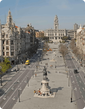 No coração do Porto, a Praça da Liberdade é o ponto onde a tradição e a modernidade se encontram. Criada no século XVIII, ganhou seu aspecto atual no início do século XX, quando foi remodelada para abrigar importantes edifícios bancários e hoteleiros. Dominada pela estátua de D. Pedro IV, erguida em 1866, a praça homenageia o rei que concedeu a Constituição portuguesa. Ao seu redor, ergue-se a majestosa Avenida dos Aliados, com fachadas imponentes em estilo neoclássico e art déco. É aqui que o Porto celebra grandes momentos, desde festas populares até eventos culturais, sendo considerada a “sala de visitas” da cidade.