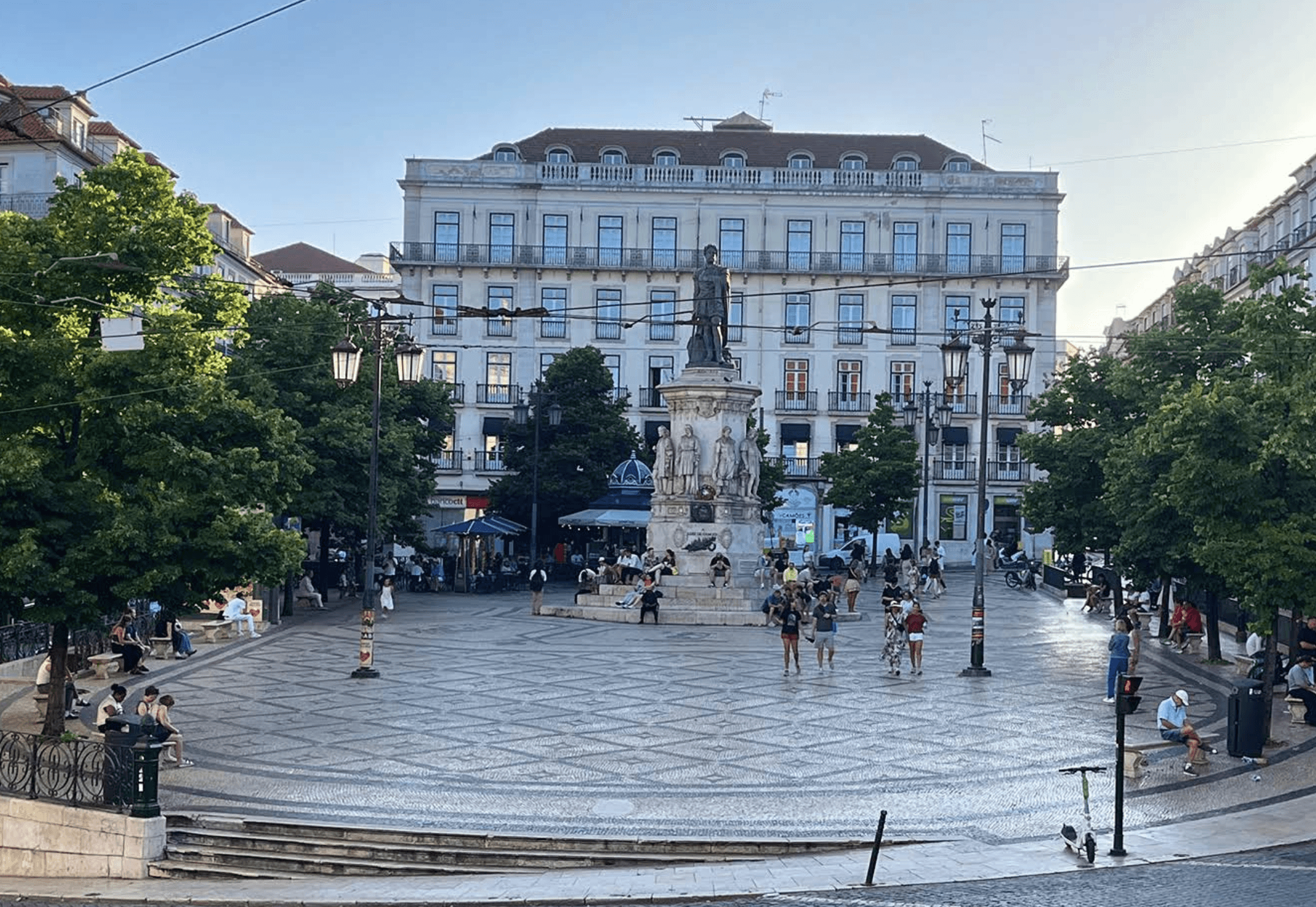 Situada entre o Chiado e o Bairro Alto, a Praça Luís de Camões é um ponto de encontro vibrante e carregado de simbolismo. No centro ergue-se a estátua do grande poeta português Luís de Camões, autor de Os Lusíadas, obra épica que celebra os feitos dos navegadores portugueses. Ao redor do pedestal, esculturas representam figuras ilustres do Renascimento, reforçando a ligação da praça à identidade cultural do país. Hoje, além de ser passagem para algumas das ruas mais movimentadas de Lisboa, o espaço convida a observar a arquitetura pombalina que o cerca e a sentir a mistura entre tradição literária e vida boêmia lisboeta.