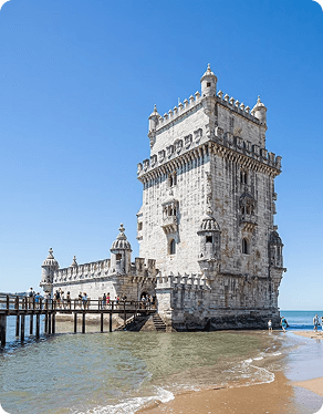 Erguida entre 1514 e 1520 às margens do Tejo, a Torre de Belém é um dos maiores símbolos de Lisboa e da época dos Descobrimentos. Construída em estilo manuelino, mistura elementos góticos e renascentistas com detalhes marítimos, como cordas, esferas armilares e cruzes da Ordem de Cristo. Originalmente concebida como fortificação defensiva para proteger a entrada do porto, a torre também serviu como farol e até prisão ao longo dos séculos. Classificada como Patrimônio Mundial da UNESCO, encanta pela sua arquitetura em pedra lioz e pela varanda com vistas privilegiadas do rio. Uma curiosidade: sua beleza foi tão marcante que inspirou outras torres ao redor do mundo.