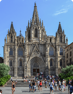 No coração do Bairro Gótico ergue-se a Catedral de Barcelona, dedicada à Santa Cruz e a Santa Eulàlia, padroeira da cidade. Construída entre os séculos XIII e XV sobre antigas ruínas romanas, sua fachada neo-gótica só foi concluída entre 1882 e 1913.