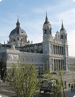 Em frente ao Palácio Real, a Catedral de Santa María la Real de la Almudena ergue-se como símbolo da fé e da modernidade madrilenha. Sua construção começou no século XIX, mas só foi concluída em 1993 — um feito raro para uma catedral europeia tão recente. Essa longa trajetória explica sua mistura de estilos: fachada neoclássica, interior neogótico e uma cúpula decorada com mosaicos contemporâneos. Dedicada à padroeira de Madri, a Virgem da Almudena, a catedral foi palco do casamento do rei Felipe VI e da rainha Letizia. Ao entrar, repare na luz colorida filtrada pelos vitrais e na vista panorâmica da cúpula, de onde se revela um dos melhores ângulos da cidade.