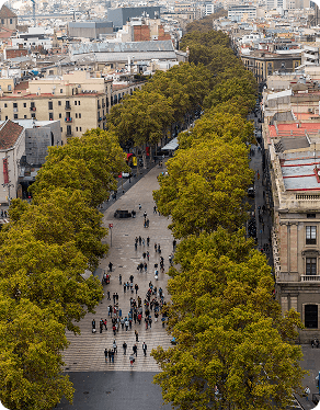 La Rambla é o coração pulsante de Barcelona — uma avenida vibrante que liga a Plaça de Catalunya ao Porto Velho, convidando a um passeio repleto de cores, sons e aromas. Ao caminhar por seus 1,2 km, é possível sentir o espírito da cidade entre artistas de rua, floristas, quiosques e cafés históricos. Construída sobre um antigo leito de rio, a rua ganhou vida no século XVIII e tornou-se o ponto de encontro mais famoso de Barcelona. No caminho, destacam-se o mosaico colorido de Joan Miró e o emblemático Mercado La Boqueria, uma explosão de sabores e tradições catalãs. La Rambla é um lugar para observar, se encantar e mergulhar na alma barcelonesa — onde cada passo revela um fragmento da vida local.