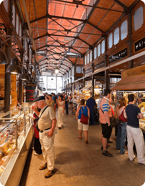 A poucos passos da Plaza Mayor, o Mercado de San Miguel é um templo gastronômico que celebra o melhor da culinária espanhola. Inaugurado em 1916, o edifício de ferro e vidro é um belo exemplo da arquitetura de mercado do início do século XX — e hoje combina tradição e modernidade em perfeita harmonia. Entre seus corredores, os aromas se misturam: jamón ibérico recém-cortado, azeitonas temperadas, queijos artesanais e taças de vinho tintilando a cada brinde. Mais do que um mercado, é uma experiência sensorial onde se pode provar um pouco de cada canto da Espanha, em um só lugar.