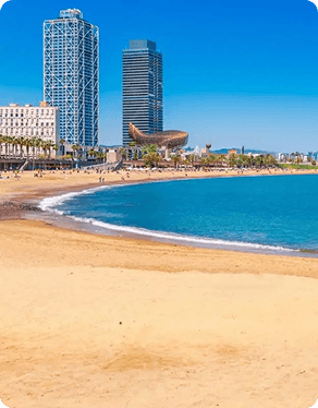 A Praia da Barceloneta é uma das mais conhecidas e movimentadas de Barcelona, localizada no bairro homônimo que nasceu como uma vila de pescadores no século XVIII. Sua ampla faixa de areia e o calçadão convidam a longas caminhadas à beira-mar, repletas de bares, quiosques e ciclovias.