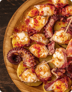 Originário da Galícia, no noroeste da Espanha, o Pulpo a la Gallega — ou Polbo á Feira em galego — é um dos pratos mais emblemáticos da região. Preparado com polvo cozido lentamente, é servido em rodelas sobre batatas, regado com azeite de oliva extravirgem e polvilhado com sal grosso e páprica.