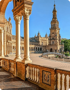 Sevilha, capital da Andaluzia, é marcada pela herança mourisca, cristã e judaica. No centro histórico, a Catedral de Sevilha impressiona como uma das maiores do mundo, abrigando o túmulo de Cristóvão Colombo e a icônica Giralda, antiga torre de minarete que hoje serve como campanário.