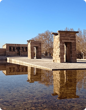 Um pedaço do Egito antigo repousa no coração de Madri. O Templo de Debod, construído há mais de 2.000 anos, foi um presente do governo egípcio à Espanha em 1968, como forma de agradecimento pela ajuda na preservação dos monumentos de Núbia. Pedra por pedra, o templo foi transportado e reconstruído no Parque del Oeste, onde hoje se reflete em um espelho d’água. Suas colunas e hieróglifos narram histórias de deuses e faraós, enquanto o pôr do sol atrás do monumento oferece um dos cenários mais mágicos da cidade — um encontro entre civilizações que atravessou o tempo.