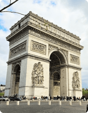 Erguido no final da Champs-Élysées, o Arco do Triunfo foi encomendado por Napoleão Bonaparte em 1806 para celebrar suas vitórias militares e homenagear os soldados franceses. Com 50 metros de altura, o monumento impressiona pelos relevos esculpidos que contam cenas de batalhas históricas. Aos pés do arco, repousa o Túmulo do Soldado Desconhecido da Primeira Guerra Mundial, marcado por uma chama eterna que nunca se apaga. Subir até o topo é um dos passeios mais especiais: de lá, é possível ver do alto as doze avenidas que partem em direção ao arco, em um espetáculo urbano único de Paris.
