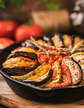 Originário da região da Provença, no sul da França, o ratatouille é um prato rústico que conquistou o mundo pela simplicidade e sabor. Trata-se de um ensopado de legumes — geralmente berinjela, abobrinha, pimentão, tomate e cebola — cozidos lentamente com ervas aromáticas como tomilho e manjericão. Mais do que uma receita, é a celebração da cozinha camponesa francesa, que transforma ingredientes frescos em um prato colorido, saudável e cheio de perfume. Em Paris, ficou ainda mais popular após inspirar o filme homônimo, que fez muita gente descobrir a beleza de um prato humilde, mas cheio de história.
